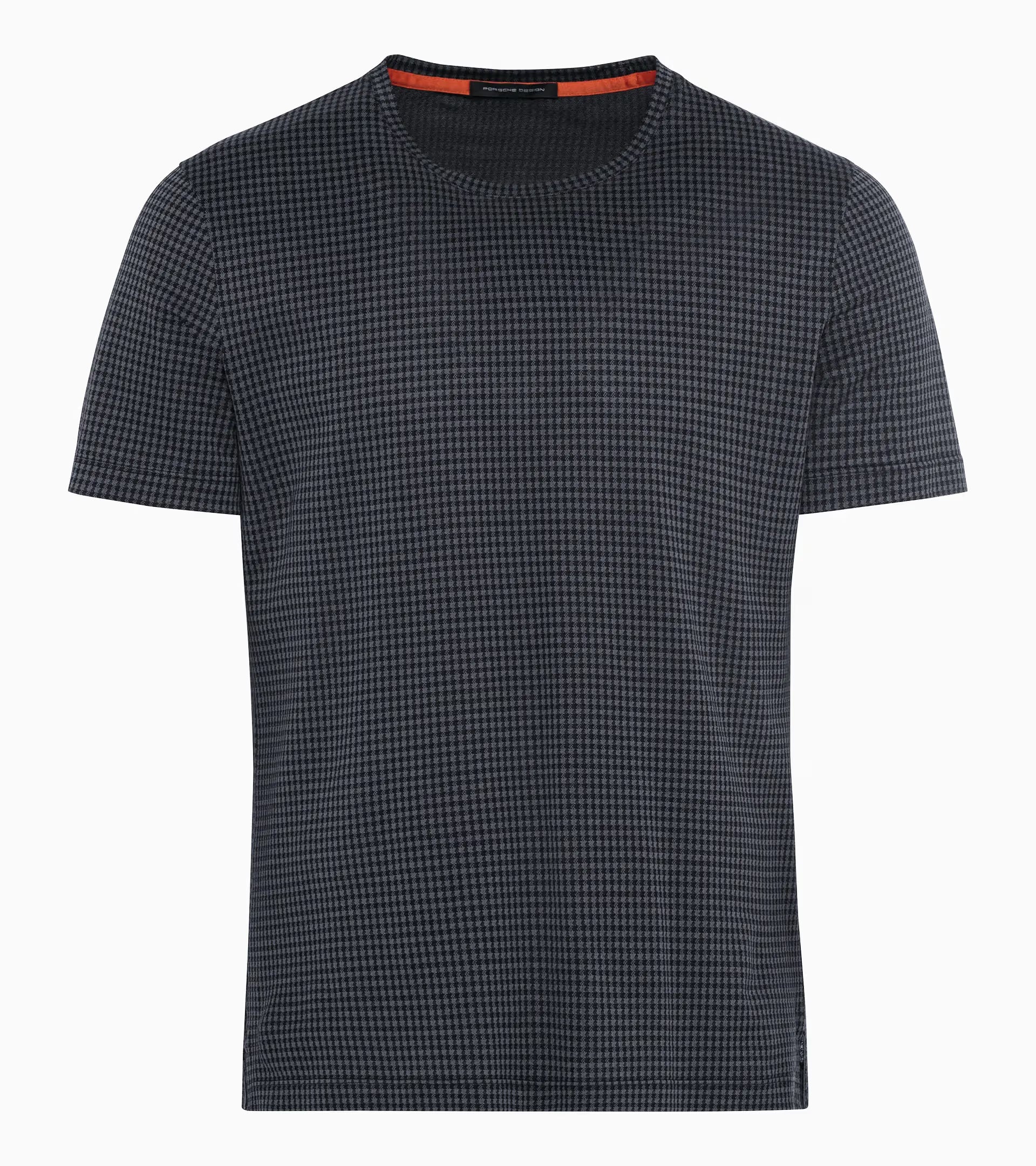 The jacquard T-shirt from Porsche Design combines iconic design elements with modern comfort. The exclusive all-over Pepita pattern is a homage to the legendary Targa interior and gives the shirt a unique character. The slim fit creates a sporty silhouette, while the classic crew neck and short sleeves complete the timeless look.