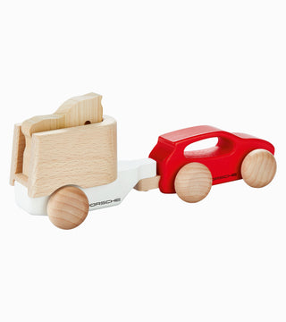 Double the horsepower with this high-quality wooden Porsche Cayenne toy car. With a horse trailer and figurine, young gearheads can hitch up and hit the road for imaginative adventures. The precise craftsmanship develops motor skills. A perfect gift for Porsche fans aged 3 and up.