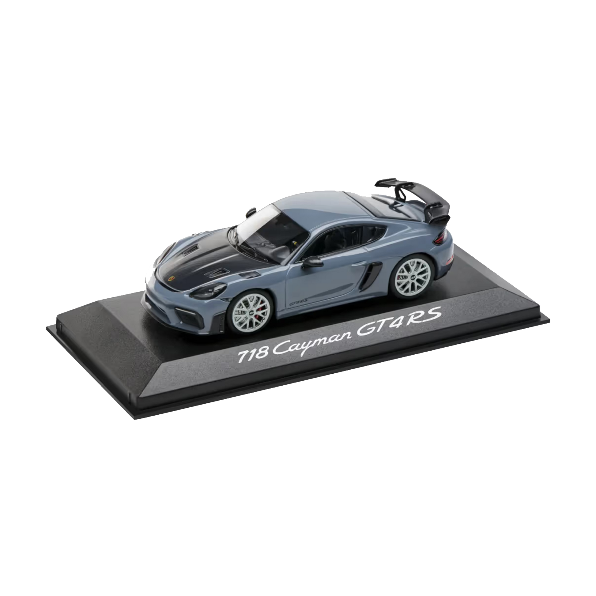 From the racetrack straight to your home: The high-quality, detailed collector's model of the Porsche 718 Cayman GT4 RS (982) is a real eye-catcher on the shelf or desk.
