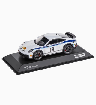 The exclusive 1:43 scale model of the Porsche 911 Dakar (992) with Rally 1972 Design showcases impressive attention to detail and deserves its place in any collection. In exclusive packaging, making it the perfect gift for all Porsche fans.