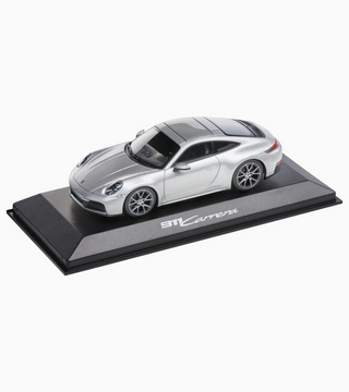 The exclusive 1:43 scale model of the Porsche 911 Carrera Coupé (992.2) showcases impressive attention to detail and deserves its place in any collection. The packaging also makes it the perfect gift for all Porsche fans. Die-cast. GT Silver Metallic exterior, Black interior.
