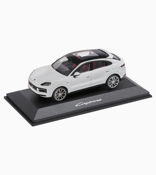The exclusive 1:43 scale model of the Porsche Cayenne E-Hybrid Coupé (E3 II) impresses with its attention to detail and is a must-have for any collector. Its accompanying packaging also renders it an ideal gift for all Porsche enthusiasts. Exterior in carrara white metallic, interior in black/burgundy red.