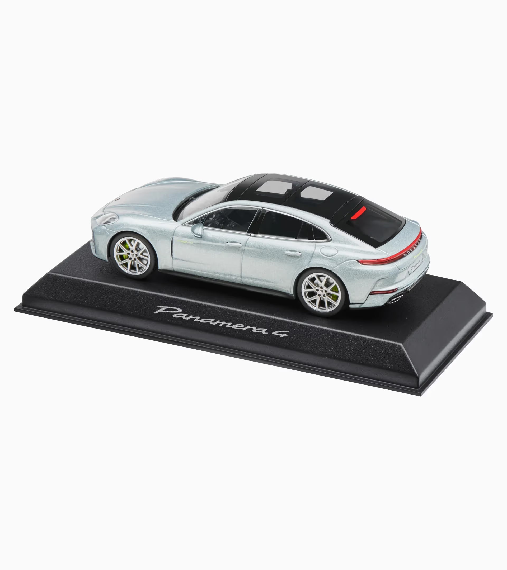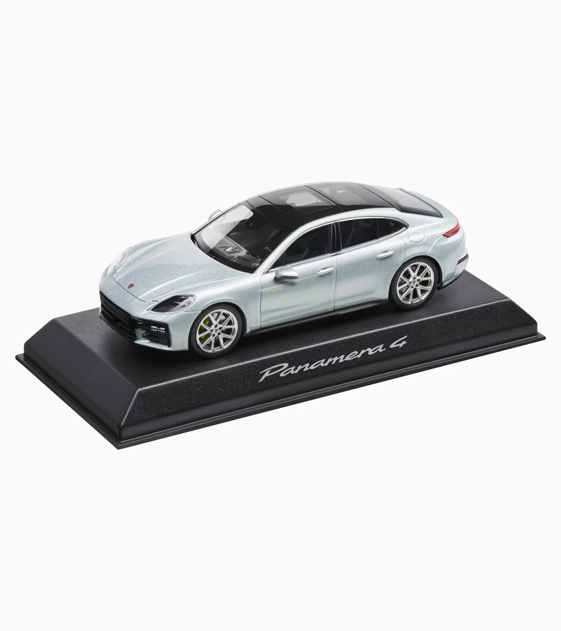 The exclusive 1:43 scale model of the Porsche Panamera 4S E-Hybrid (G3) showcases impressive attention to detail and deserves its place in any collection. With the included exclusive packaging, it becomes the perfect gift for every Porsche fan. Die-cast. Dolomite Silver exterior, Black interior.