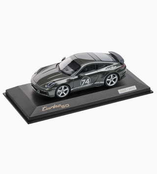 The exclusive 1:43 scale model of the Porsche 911 Turbo S with Heritage Design Package (992) showcases impressive attention to detail and deserves its place in any collection. In exclusive packaging, making it the perfect gift for all Porsche fans. Die-cast. Aventurine Green exterior, Black interior.