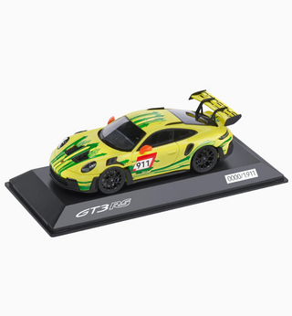 The exclusive model of the Porsche 911 GT3 RS (992) Grello in a scale of 1:43 impresses with its attention to detail and should not be missing from any collection. The included packaging also makes it the perfect gift for all Porsche fans. Consists of resin. Exterior in yellow/green, interior in black.