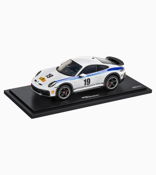 The exclusive 1:18 scale model of the Porsche 911 Dakar (992) with Rally 1974 Design showcases impressive attention to detail and deserves its place in any collection. In exclusive packaging, making it the perfect gift for all Porsche fans.