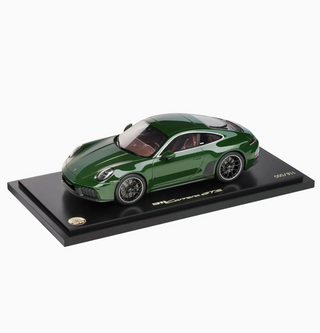 The exclusive 1:18 scale model of the Porsche 911 Cuarenta Edition (992) showcases impressive attention to detail and deserves its place in any collection. The packaging also makes it the perfect gift for all Porsche fans. Made of resin. Quercusverde exterior, Brown interior.