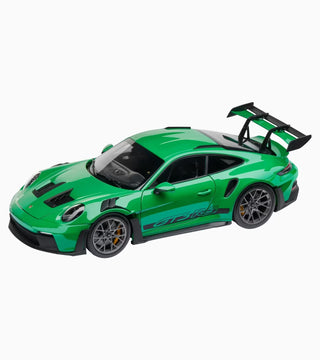 The exclusive 1:18 scale model of the Porsche 911 GT3 RS (992) with doors that open showcases impressive attention to detail and deserves its place in any collection. In exclusive packaging, making it the perfect gift for all Porsche fans.