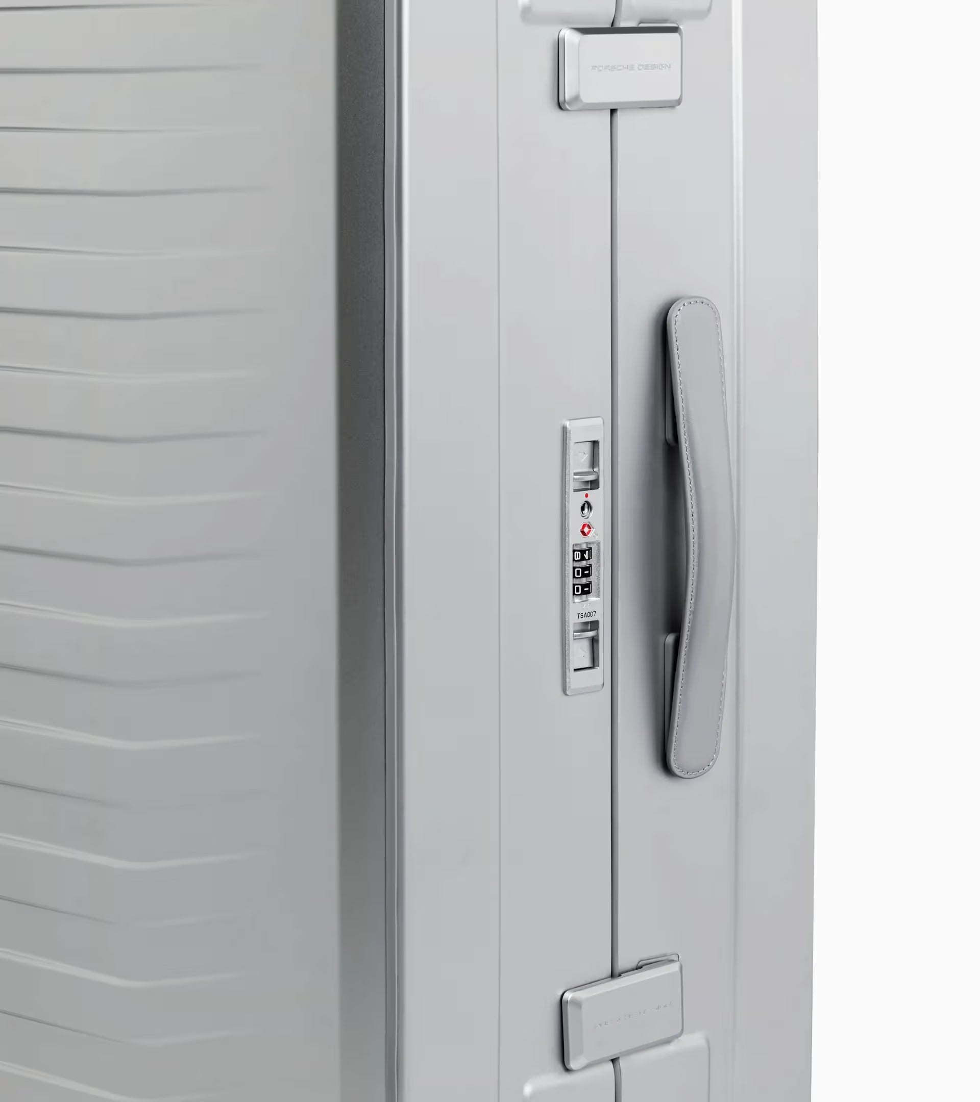 A cabin trolley made of high-quality anodised aluminum, embodying Porsche DNA in every detail with its innovative construction.