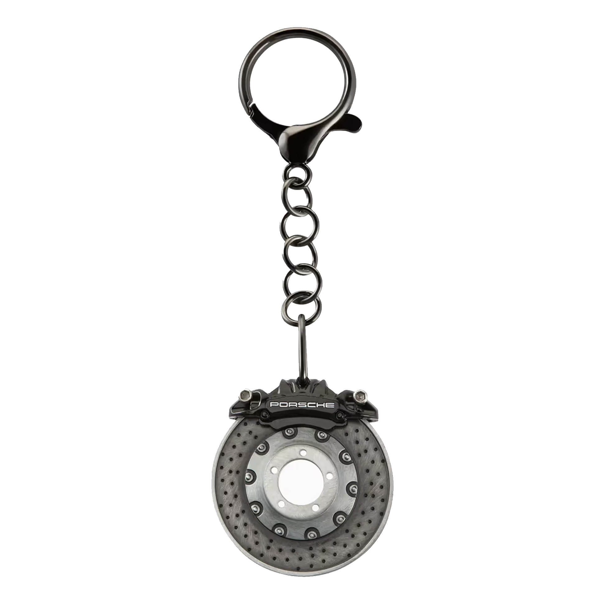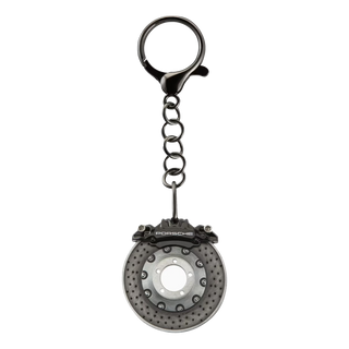 Design, that's guaranteed to keep the pace: Porsche key ring in a faithful replica of a brake disc. The brake disc is rotatable and compatible with all Porsche vehicle keys.