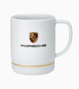 Small porcelain cup in exclusive Porsche shape. Two recessed grooves inspired by the Porsche engine pistons, rounded off by the Porsche Crest and the classic gold ring. Including gift packaging.