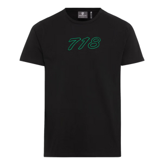 Sporty modern unisex short-sleeved T-shirt from Porsche with crew neck and finely embroidered '718' lettering.