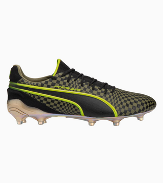 A tribute to iconic design and sporty elegance – the legendary Pascha pattern gives the Porsche 911 Spirit 70 Collection its striking look. The next generation of KING Ultimate football boots sets new standards. The combination of the durable K-BETTER™ upper material and the GRIPCONTROL 3D structure on the inside ensures improved ball control. Visually, the football boot impresses with a modern silhouette based on the iconic Porsche Pascha seat fabric. Neon green details and the 911 print on the heel make the boot a real eye-catcher.