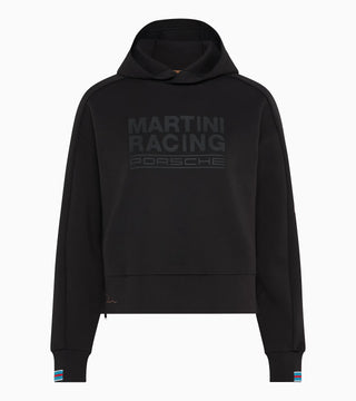 Racing style at its finest. The women's hoodie from the MARTINI RACING® Collection combines sporty elegance with legendary motorsport design. Inspired by the legendary Porsche 936 Spyder, it impresses with carefully considered details and a striking look.The modern boxy shape and the soft, structured material ensure a comfortable fit. Subtle MARTINI RACING® stripe details on the cuffs and embroidery on the hood pick reference the iconic design. A matte, tonal print on the front as well as the Porsche and MARTINI RACING® logo underline the minimalist aesthetic and emphasise the motorsport DNA. A No. 6 badge on the sleeve in the style of the 936 Spyder vehicle lettering underlines the connection to the iconic racing car. Functional zips on the sides add an additional design highlight and make versatile wearing options possible.