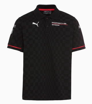 Experience the pure passion of motorsport with the Porsche Motorsport Replica Collection and feel the motorsport team spirit. Striking Red accents and the iconic Pasha pattern of the 1970s combine the rich history of Porsche with the dynamics of racing. The polo shirt for men features a sporty look with its front button placket and regular fit. Visually, the shirt is a real eye-catcher thanks to the tonal all-over Pasha pattern.