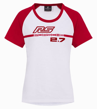 A piece of Porsche history - for everyday : the casual half-sleeve T-Shirt with raglan sleeves and RS 2.7 flock print on the chest is made to express a historic love of Porsche in a modern way.